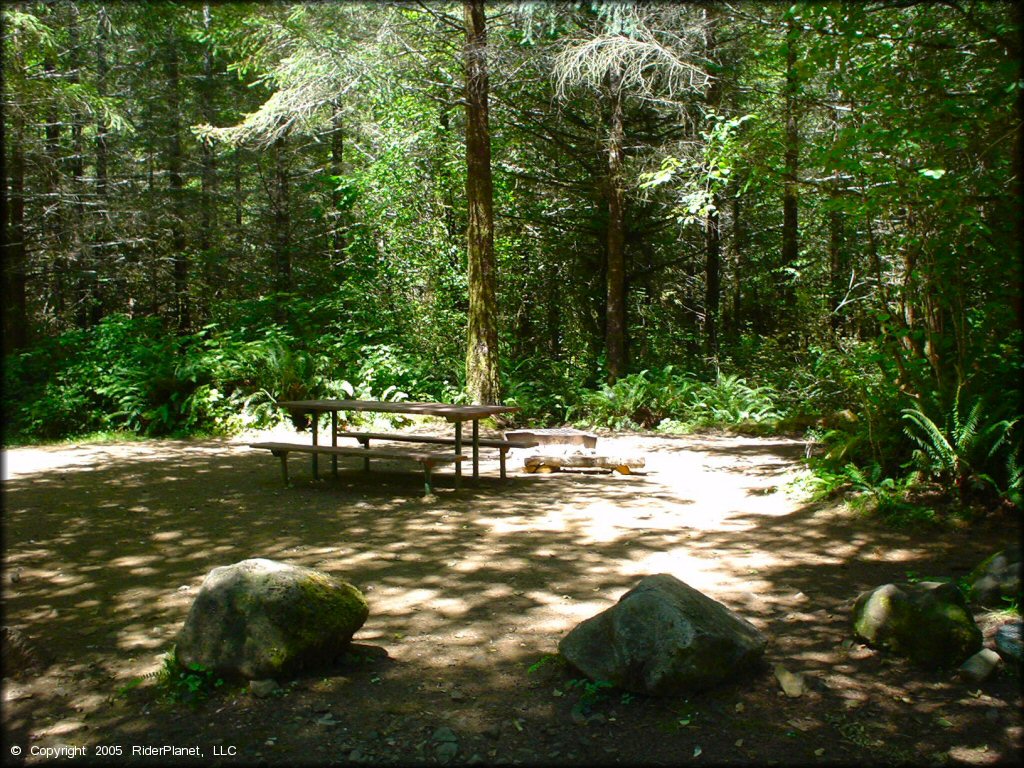 The campground offers six shady sites, each with a picnic table and fire ring.