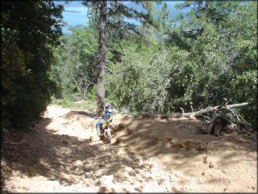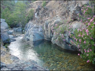 The trails here could be described as dry and a bit rocky, but the scenery is really top notch. Most of the trails are really wide jeep roads but there are some that are only wide enough for ATVs and dirt bikes. The trail system offers a wide variety of terrain that range from dozens of creek crossings, steep hill climbs and descents with both small and medium sized loose chunk rock.