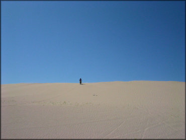 Well, it's the perfect place to learn how to ride the sand without the dangers and annoyance of rider traffic or crowds. There is only one main dune, and it's very small, but there is one section of rolling sand with some vegetation that is fun.