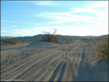 This secluded area offers several miles of sand washes and desert trails that lead to a small but fun dune area. There is no shade and there are no amenities, but due to the remoteness there are no crowds either. Access is free and overnight camping is permitted. Vegetation is sparse but mainly consists of scattered scrub brush. The Mojave Road can be accessed from this area which provides direct access for street legal vehicles into the Mojave National Preserve.