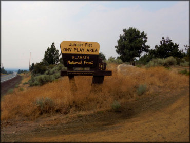 This is the main entrance sign for Juniper Flats OHV Area. The riding area is close to the highway, which makes it easy to get in and out.