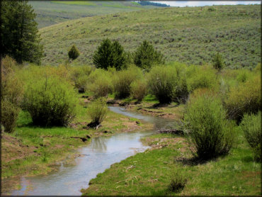 This grassy meadow is located off Magic Mountain Road before Bear Gulch Campground. This area on both sides of the road is open for non-motorized use only but there are places like this where you can hike to a pleasant shallow creek.