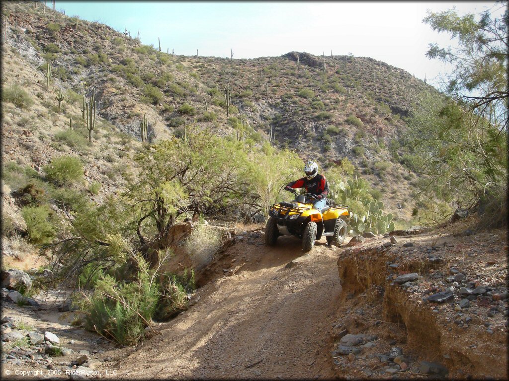 The main trail mostly follows the wash, dropping in and out with lots of turns.