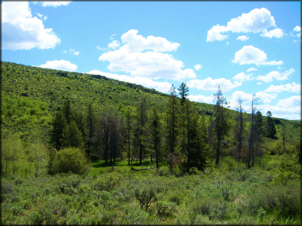 As you head west off Hwy 93 toward the South Hils, the vegetation starts out as typical high desert but gradually gets greener.